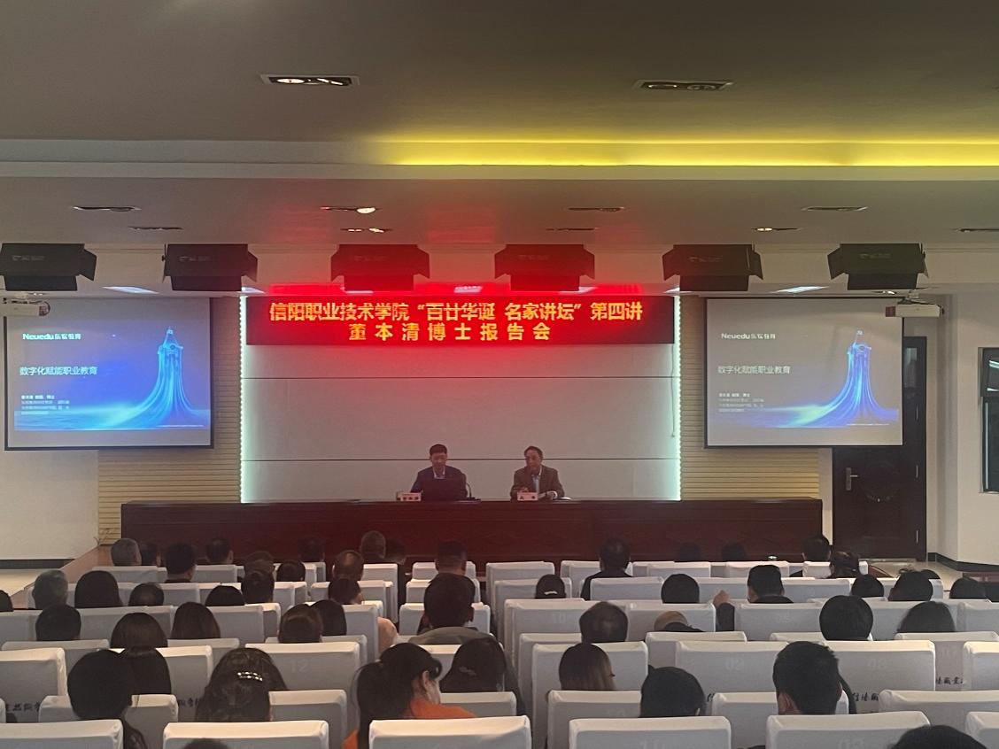3月28日下午,东软教育科技集团副总裁、东软教育科技研究院经理董本清博士应邀到公司作了题为《数字化赋能职业教育》的报告会。公司党委书记郑洪涛,副董事长王豪、郑延芳、李新毓、教务处处长余磊、党办主任张国锋、bevictor伟德体育院长黄德成、党总支书记严正香等全校副科级以上干部及各教公司部基层教学组织负责人参加了报告会,会议由王豪副董事长主持。